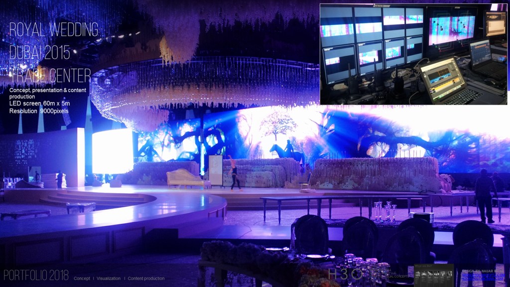 The visual content was designed in perfect sync with a troupe of ballet dancers performing live on stage. As the narrative unfolds, the prince, enchanted and disoriented, loses his way in a mystical forest. From the trees, glowing orbs begin to rise and grow. One of these orbs becomes his guiding light, leading him back toward the princess.