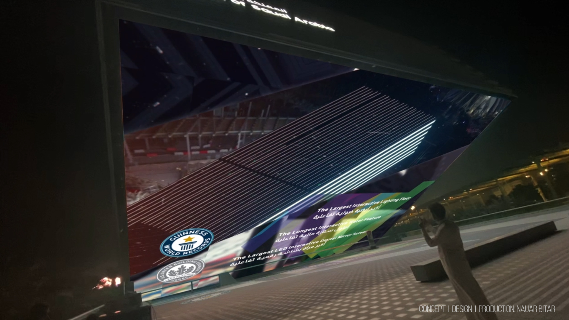 The pavilion has earned three Guinness World Records for the largest interactive lighting floor, the longest interactive water feature, and the largest LED interactive digital mirror screen.