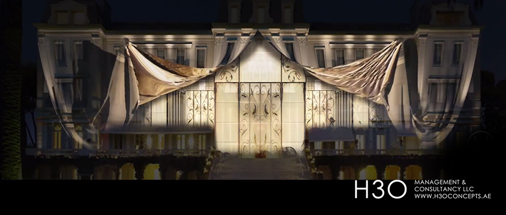 H3oMC has been behind several Royal and high profile weddings. Starting from 2005 H3oMC has created original wedding concepts and followed with delivering high class, large scale mesmerizing video content. This includes large format projection, 3D mapping projection on architectural structures, whater curtain projections and wide LED screen content.