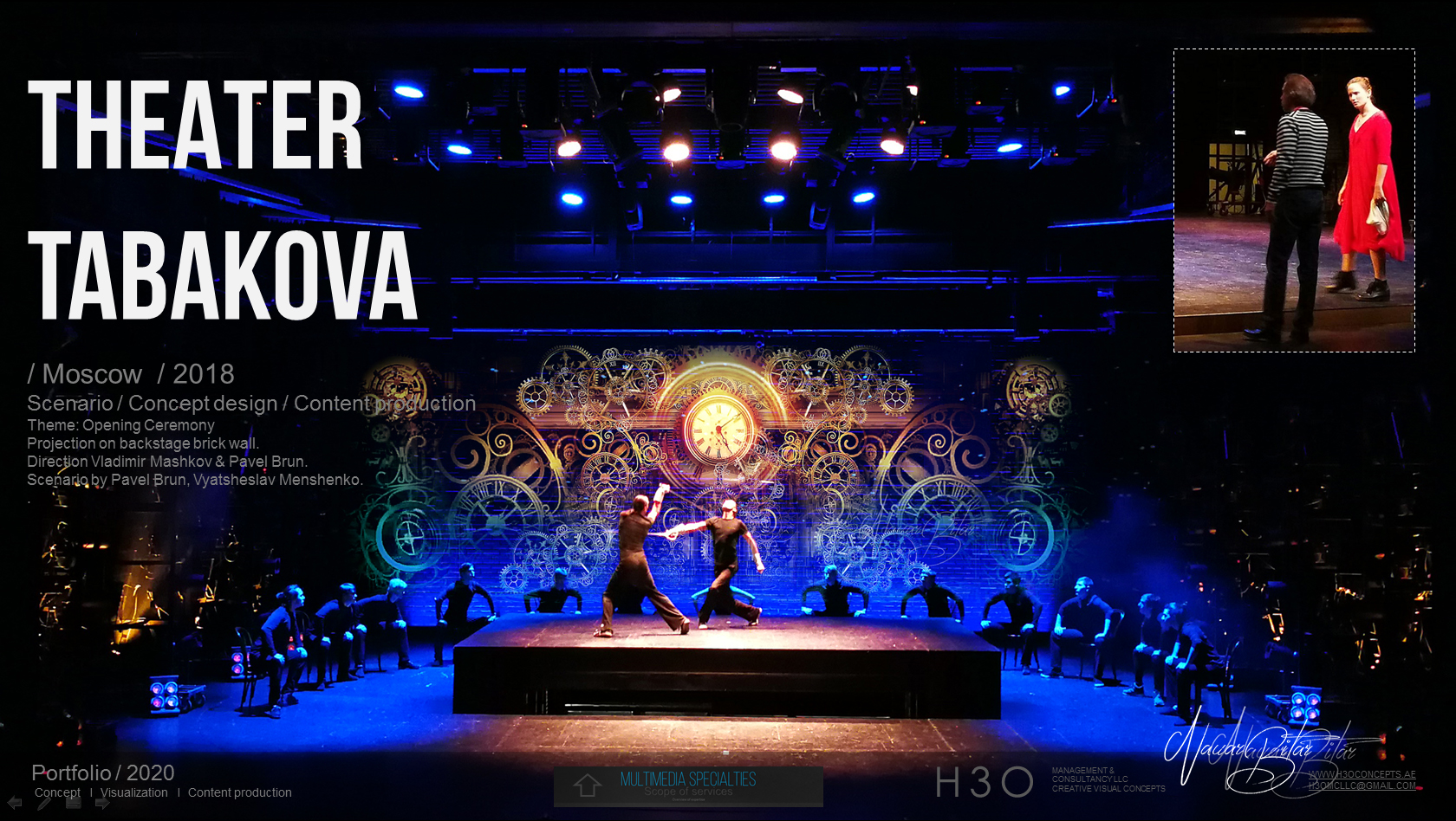H 3 O – PORTFOLIO 2020 – Tab 1 August 4, 2020 • 1680 × 948 • Theater Tabakova / content production / Moscow 2018
